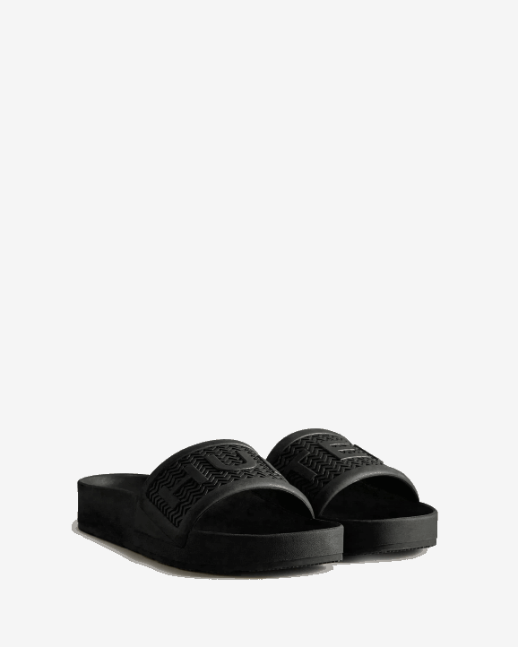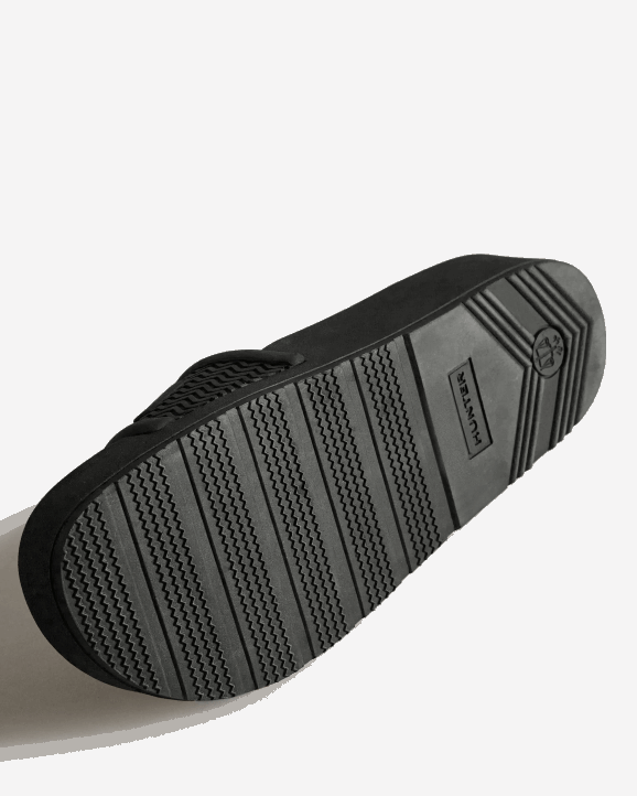 Protection, whether that's from the elements or of nature, is at the heart of Hunter. This season, we are excited to introduce a revolutionary new material produced from algae. When algae grows in excess, it can be harmful to ecosystems, so the algae in this material was sourced by cleaning up natural waterways. The Men's BLOOM Slide is crafted from a blend of our familiar lightweight blown EVA and this innovative material. Crafted from two moulded and contoured components, these black summer slip-ons have been re-engineered to be lighter and more comfortable.
