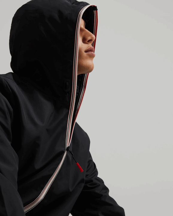 The Original Shell jacket in a classic black is packable, water-resistant and lightweight. Zip-up, stand out and be protected from the wind and rain with this windbreaker style jacket that's crafted from 100% recycled polyester with a carbon-free coating. Underarm eyelets offer breathability while the adjustable hem and hood provide extra protection from the elements. When the sun comes out, simply pack it away into the small bag tucked away in the neck seam.