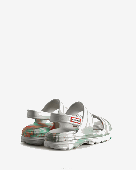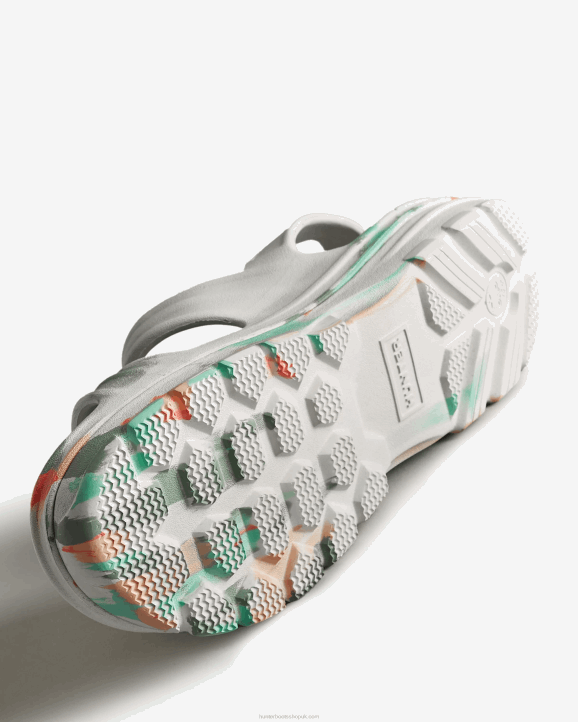 Protection, whether that's from the elements or of nature, is at the heart of Hunter. This season, we are excited to introduce a revolutionary new material produced from algae. When algae grows in excess, it can be harmful to ecosystems, so the algae in this material was sourced by cleaning up natural waterways. Our new Women's BLOOM Sandal is crafted from a blend of our familiar lightweight blown EVA and this innovative material. This white marble finish sandal from our injection moulded summer footwear range has adjustable straps and a chunky, durable tread for extra grip on all-terrains.