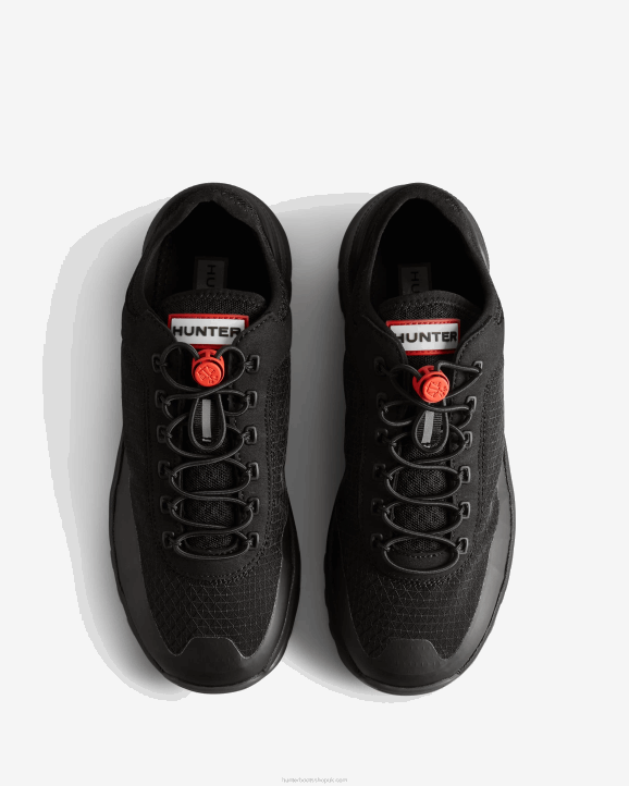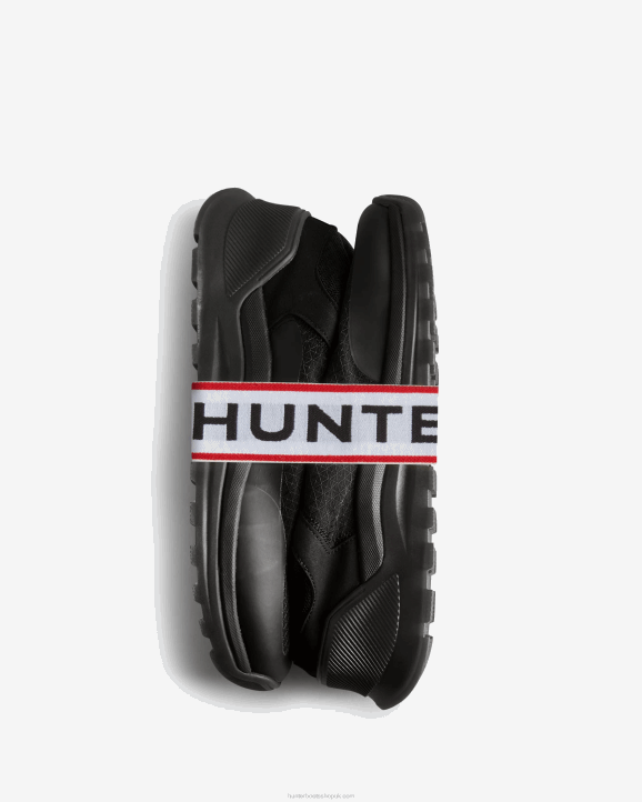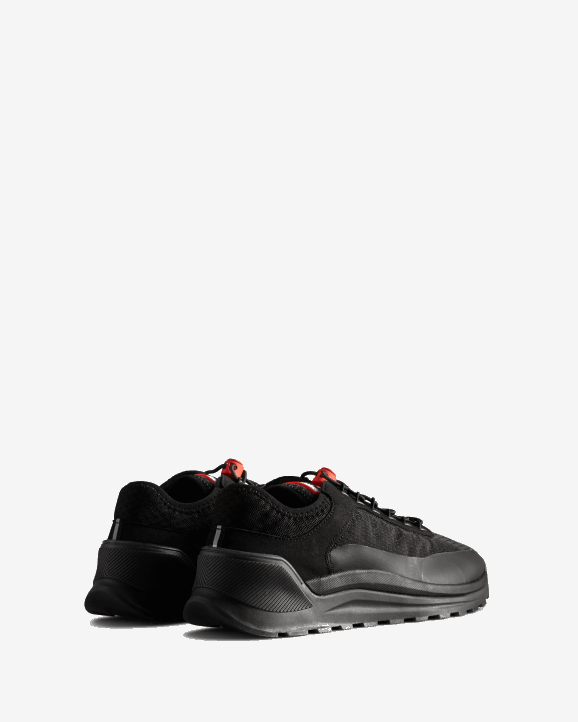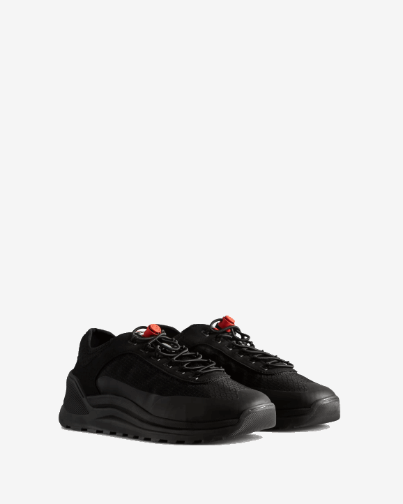 A casual city sneaker with a sport-luxe appeal, Hunter's Travel Sneaker is crafted from a soft and breathable double layer of 100% recycled nylon and mesh. The lightweight and shock absorbent recycled EVA midsole and recycled Ortholite insole ensures superior comfort and flexible wear, whilst the durable FSC-certified rubber outsole provides extra grip for all terrains. A super lightweight TPU rubber foxing line adds an extra level of protection from the rain. This women's black sneaker is finished with signature Hunter tri-colour logo pull tab on the back for ease of entry.