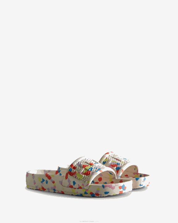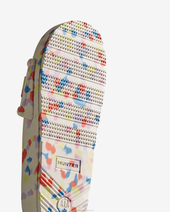 Protection, whether that's from the elements or of nature, is at the heart Hunter. This season, we are excited to introduce a revolutionary new material produced from algae. When algae grows in excess, it can be harmful to ecosystems, so the algae in this material was sourced by cleaning up natural waterways. The Women's BLOOM Slide is crafted from a blend of our familiar lightweight blown EVA and this innovative material. Featuring two moulded and contoured components, these white marble finished slip-ons have been re-engineered to be lighter and more comfortable.