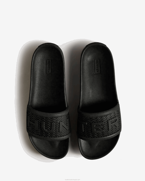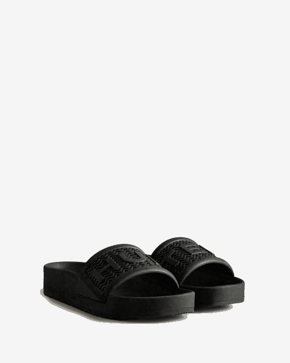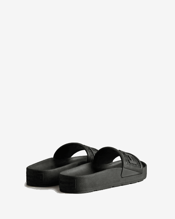 Protection, whether that's from the elements or of nature, is at the heart of Hunter. This season, we are excited to introduce a revolutionary new material produced from algae. When algae grows in excess, it can be harmful to ecosystems, so the algae in this material was sourced by cleaning up natural waterways. The Women's BLOOM Slide is crafted from a blend of our familiar lightweight blown EVA and this innovative material. Featuring two moulded and contoured components, these black summer slip-ons have been re-engineered to be lighter and more comfortable.