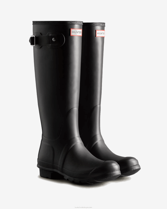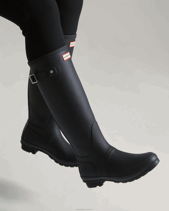 Perfect for wet weather conditions, this women's Rain Boot has been at the heart of the Hunter Original brand since its introduction in 1956. Formed of natural rubber, each pair is made from 28 hand-cut parts and assembled over three days on an aluminium last bespoke to Hunter, before being vulcanized for superior protection. Featuring the Hunter Original tread pattern, and a comfortable polyester lining, this classic matte black waterproof boot is a rainy-day necessity.