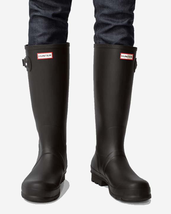 Designed to shield and protect from the elements, the Original Tall Rain Boot Boot has been at the heart of the Hunter Original brand since its introduction in 1956. Formed of natural rubber, each pair is made from 28 hand-cut parts and assembled over three days on an aluminium last bespoke to Hunter, before being vulcanized for superior protection. Featuring the Hunter Original tread pattern, and a comfortable polyester lining, this men's waterproof boot with a classic black matte finish is a wet weather necessity.